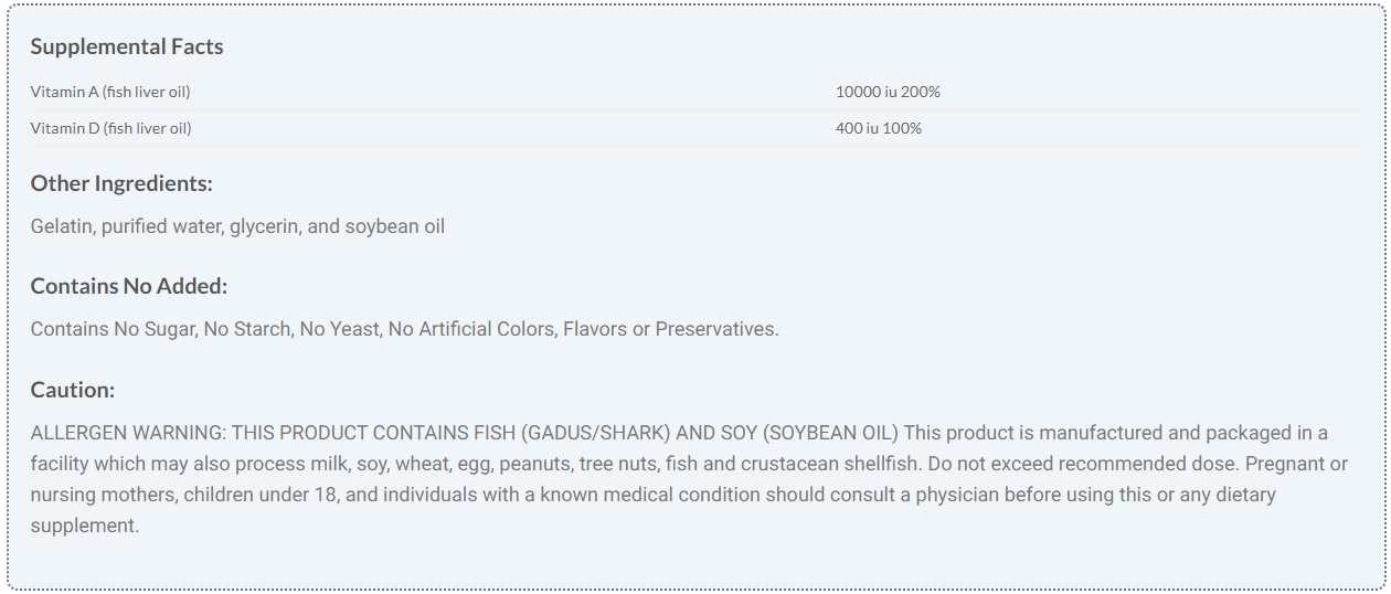 Label Information and Ingredients: